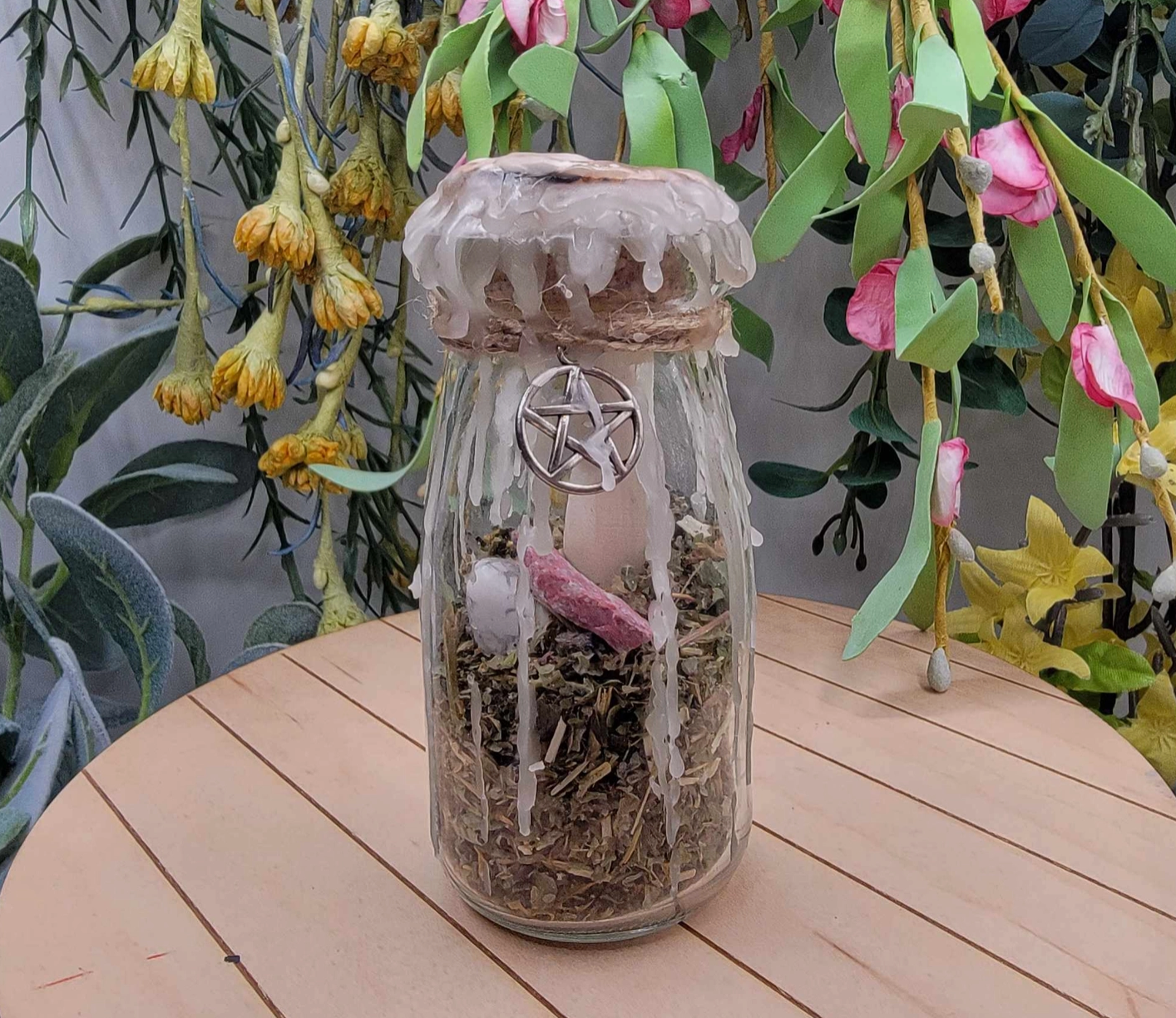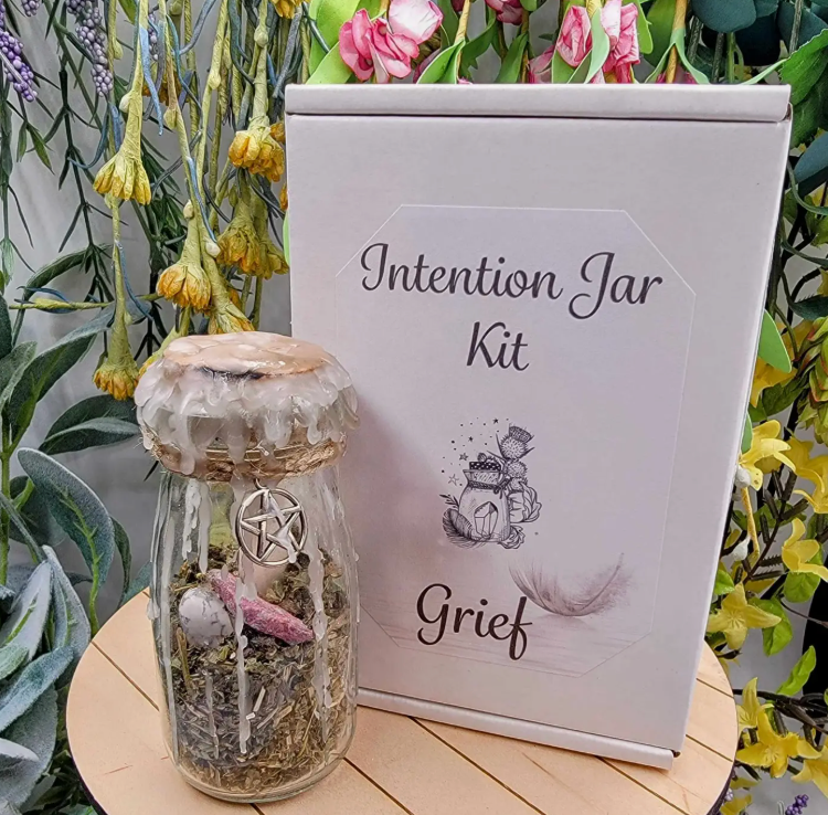 Kit includes: Instructions Jar with cork Paper Three Herbs (Lemon Balm, Passionflower, Motherwort) One Crystal ( Howlite) White Chime Candle to seal jar One White tealight for meditation Charm Twine One incense cone This kit comes with all the items listed above to build your jar.
